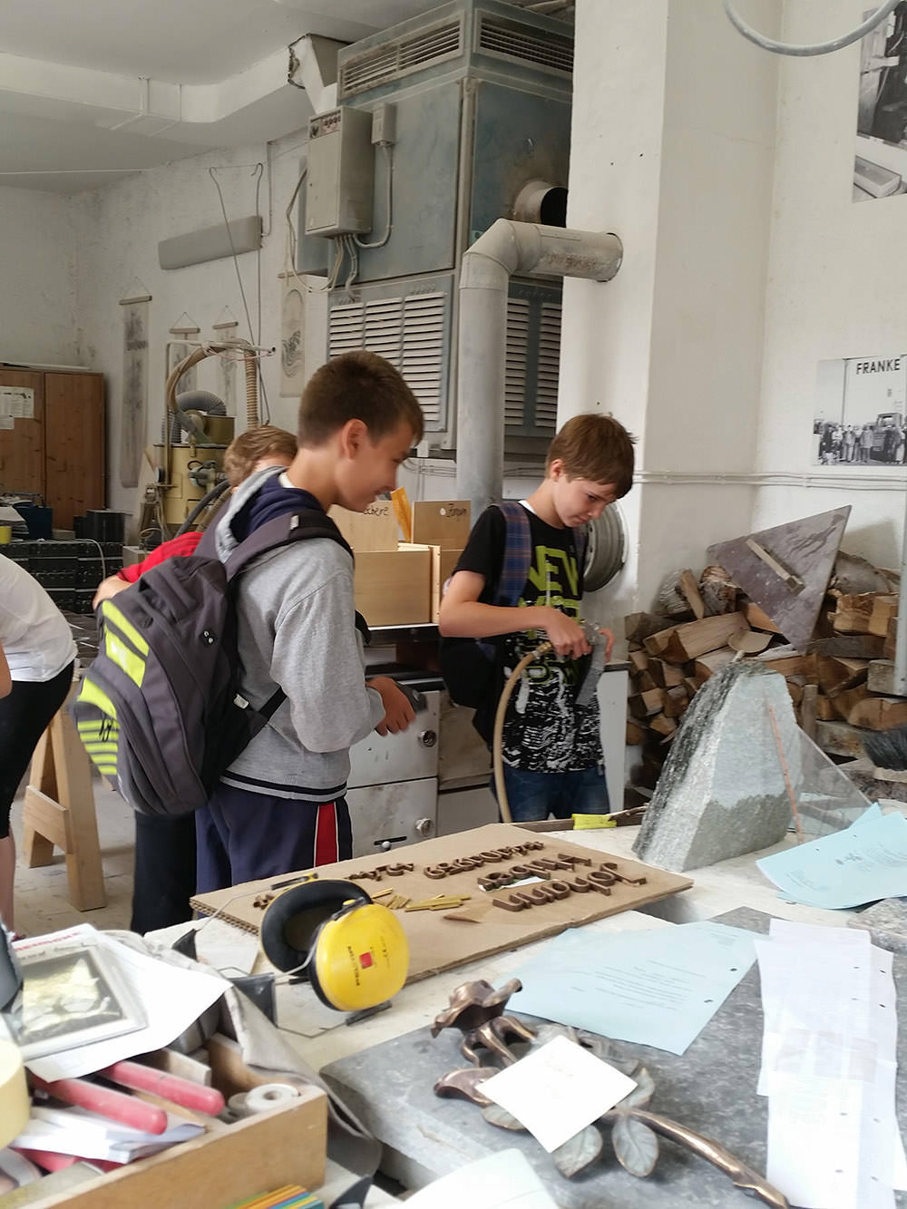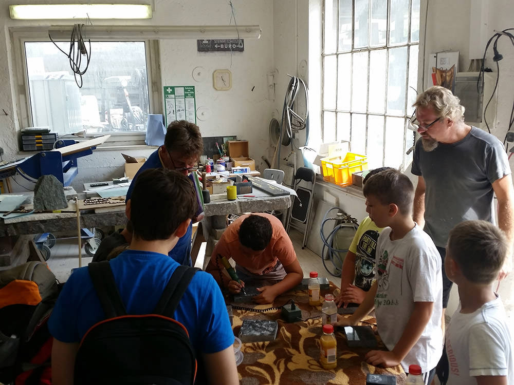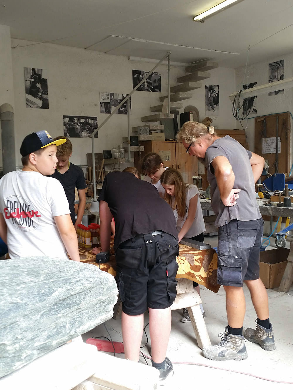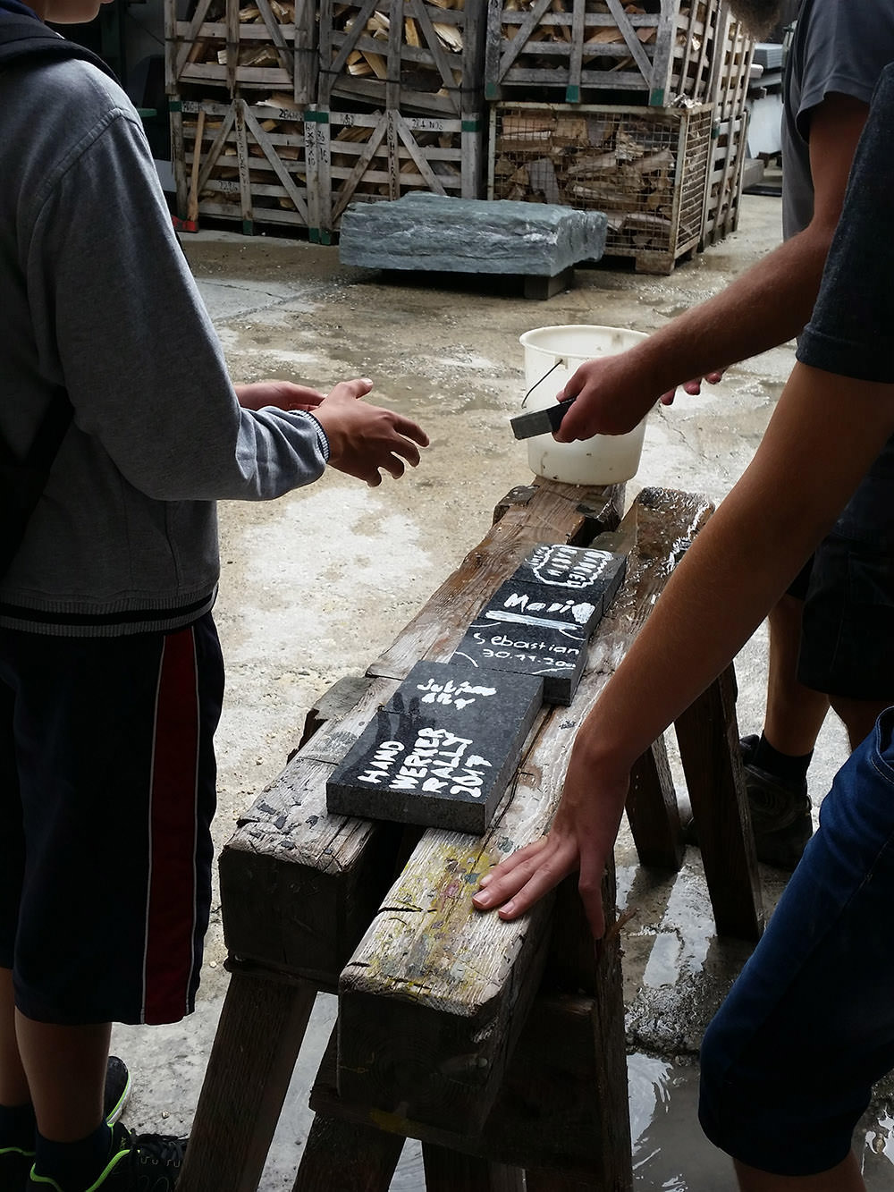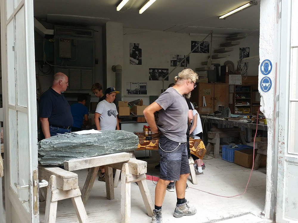 Alle haben in unseren laufenden Betriebsablauf hineingeschnuppert und durften Ritztechniken in Granit ausprobieren.