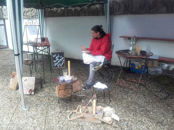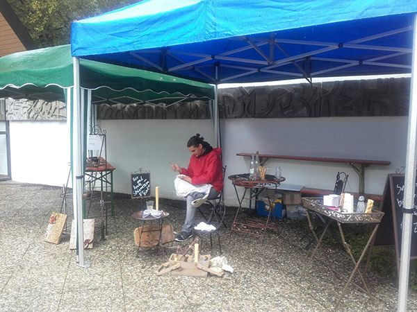 Wir haben Kreatives Steimetzhandwerk angeboten. Hier konnten Besucher kleine Steinmetzarbeiten (Specksteinarbeiten, Schieferblatten) mit Handwerkzeug durch führen.